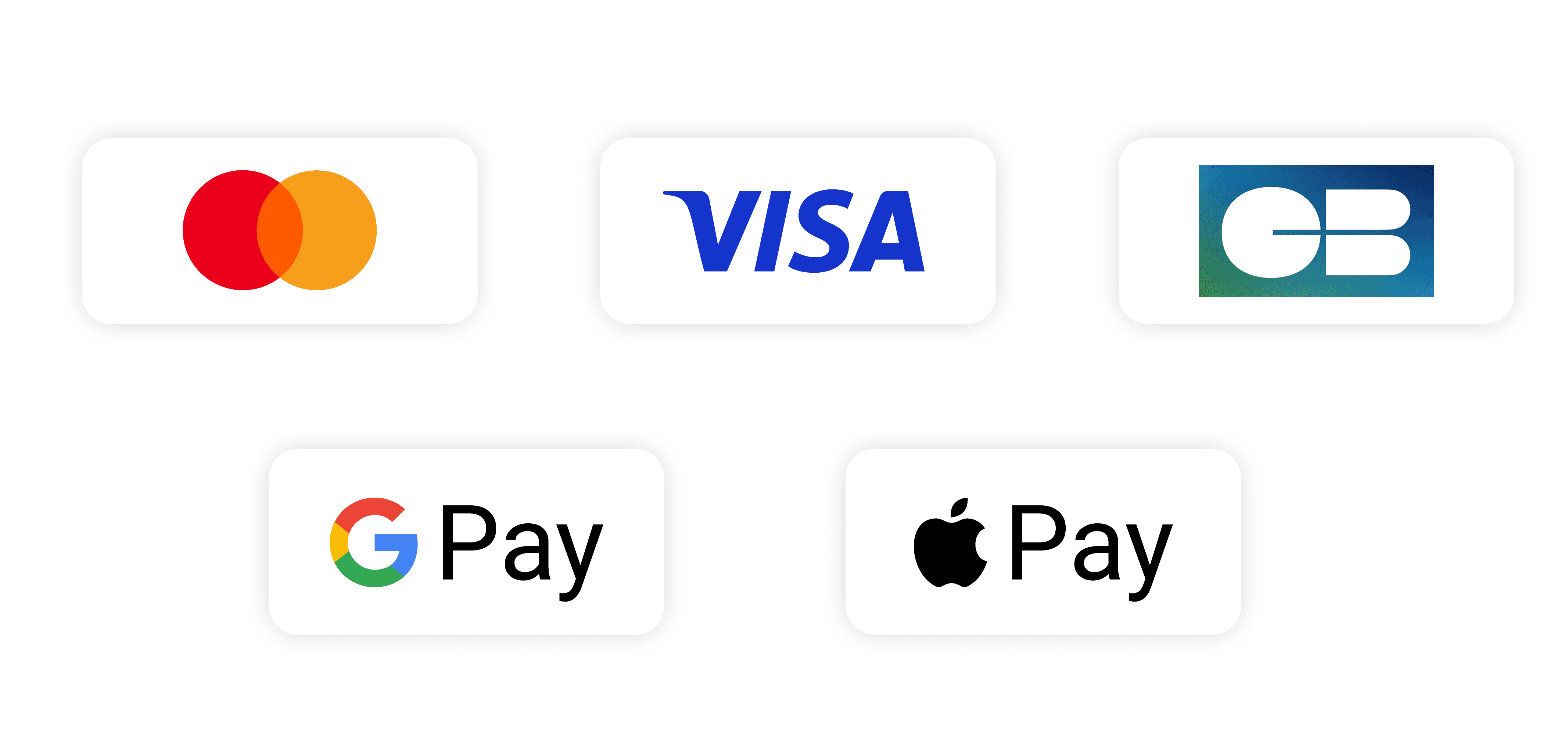 Visa, Mastercard, CB, G-pay, Apple Pay, Cartes resto